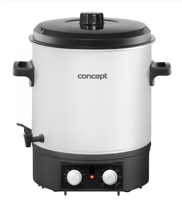 Se zavařovacím hrncem Concept ZH0030 uchováte vaši úrodu po celý rok. Poradí si nejen se zavařováním a sterilizací ovoce a zeleniny, ale i hub, masa, marmelád nebo džemů. Využít ho můžete také na výrobu šťáv, vaření a udržování teploty horkých nápojů, omáček, polévek, sterilizaci domácího moštu nebo k rozpouštění medu.Hrnec je vyroben z kvalitního nerezu a disponuje velkým vnitřním objemem 27 l. Je vybaven plastovou mřížkou, která se během zavařování vkládá na dno nádoby. Na jedno naplnění pojme až 14 ks sklenic o objemu 720 ml nebo 34 ks sklenic o objemu 370 ml.