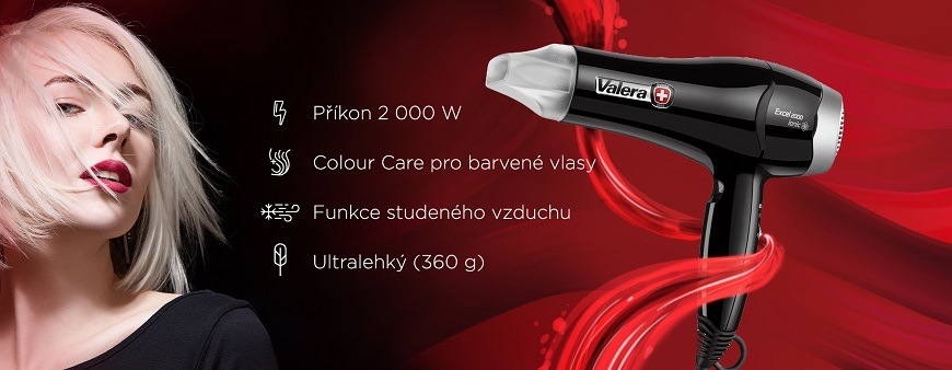 Ultralehký fén Valera Excel 2000 Ionic s příkonem 2 000 W nezatíží vaše ruce ani při delším používání, váží totiž pouhých 360 g! Zabudovaná funkce ionizace eliminuje nežádoucí statickou elektřinu, takže se vlasy při fénování nezacuchají. Tato funkce navíc dodává vlasům přirozenou vlhkost, díky které pak zůstanou krásně hladké a lesklé.