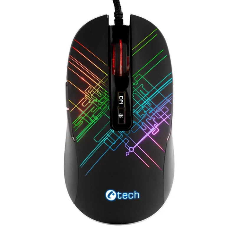 Herní myš C-TECH Dusk Vás na první pohled okouzlí svým elegantním tvarem a RGB podsvětlením. Myš disponuje optickým snímačem Intsant 704IC s maximálním rozlišením 3200DPI, které je možno pomocí tlačítka DPI měnit ve 4 úrovních. Myš je vybavena 5 tlačítky, které vám poskytnou dokonalou kontrolu nad hrou. Další dvě tlačítka jsou pro změnu DPI a volbu RGB režimu podsvětlení. 4 RGB módy s 16.8 miliony barev oživí váš stůl nejen při hraní her, ale i při kancelářské práci. Pohodlný úchop zajišťuje pogumovaný povrch horní části. Myš C-tech Dusk je díky své ergonomii vhodná pro praváky a k počítači ji připojíte 1,5m opleteným kabelem s USB konektorem.