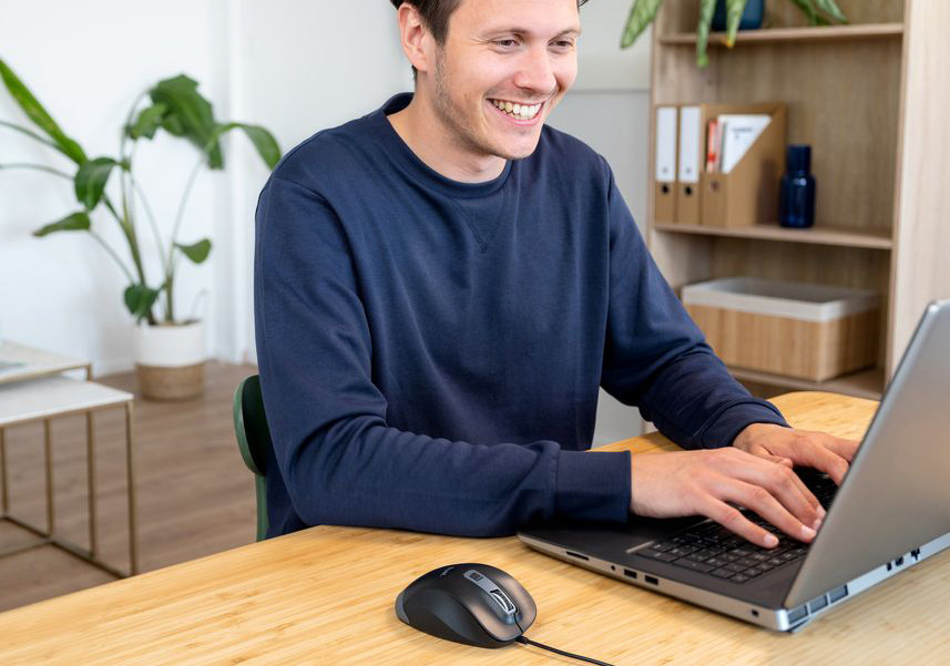 Užijte si celodenní pohodlí při práci i zábavě. Připojte myš pomocí kabelu k počítači nebo notebooku a využívejte naplno její speciální design určený pro praváky, který zajistí, že vaše ruka bude v přirozené a pohodlné poloze, aby vás nezačala tlačit nebo bolet.