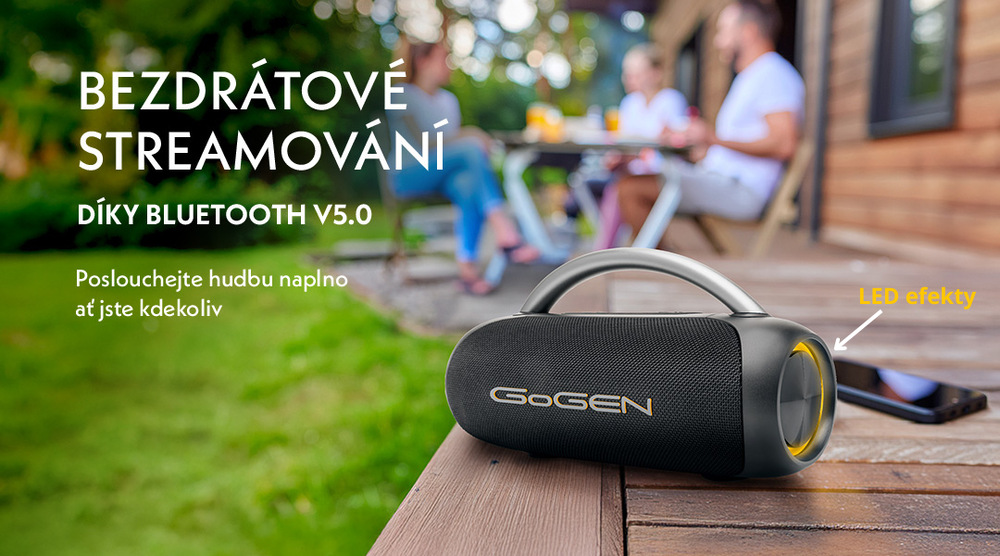 Přenosný reproduktor GoGEN ROLLEE BS 380 vám umožní poslouchat hudbu kdekoliv. Nabízí skvělý 25W zvuk, světelné efekty a snadné bezdrátové připojení přes Bluetooth. Jednoduše ho spárujte se smartphonem a můžete rozproudit zábavu na večírku, u vody nebo na výletě. Kromě Bluetooth má reproduktor i klasický AUX vstup a USB port pro přehrávání hudby z MP3 přehrávače nebo flash disku (s kapacitou až 256 GB). Na jedno nabití vydrží až 12 hodin, takže si užijete dlouhé hodiny nerušeného poslechu.