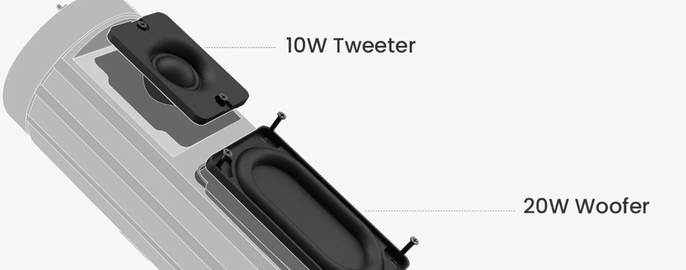 Kombinace 10W tweeteru a 20W wooferu znamená nejen celkový výkon skvělých 30 W, ale také precizní podání čistých výšek, skvěle zřetelných středů a dunivých basů. Užijete si tak všechny hudební styly i různé druhy obsahu, jako jsou například podcasty nebo hry a filmy.